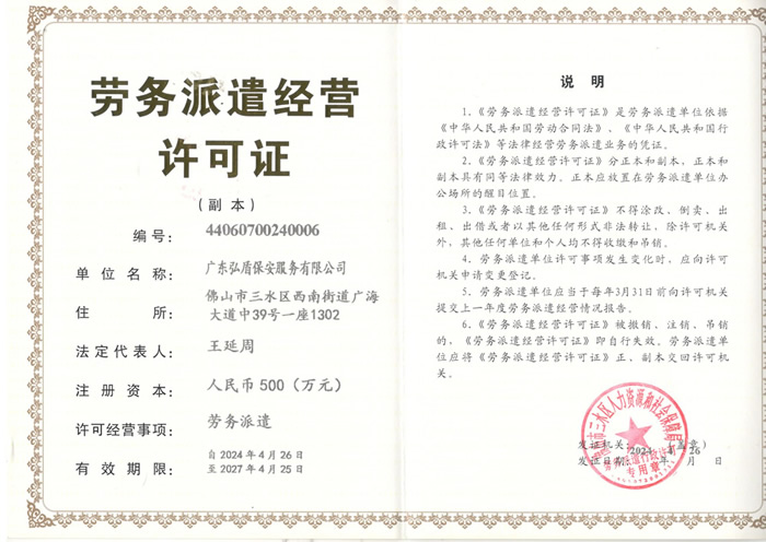 廣東弘盾保安服務有限公司東莞分公司是經東莞市公安局嚴格審核,廣東省公安廳批準頒發《保安服務許可證》,在東莞市工商行政管理機關登記注冊的,依法開展門衛、巡邏守護、秩序維護、隨身護衛,安全檢查等綜合安保服務的專業保安服務公司... [詳細介紹]
